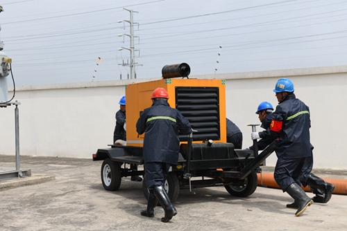 針對今年東??h域雨水增多、氣候變化頻繁,本次防汛演練以東??h域突降暴雨為背景,110千伏濱河變模擬暴雨后排水系統(tǒng)排水不及,雨水經過電纜溝倒灌進變電站,綜合檢驗多部門協(xié)同合作,出現汛情時運維人員的防汛對應能力。