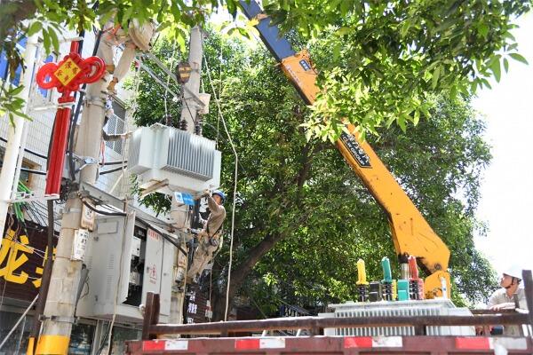 本網(wǎng)訊 7月9日上午,在云霄縣南大街,國(guó)網(wǎng)云霄縣供電公司組織施工人員克服炎熱天氣,加緊對(duì)10千伏木材支線的保險(xiǎn)配變進(jìn)行增容改造,全力保障轄區(qū)群眾在夏季期間用好電。