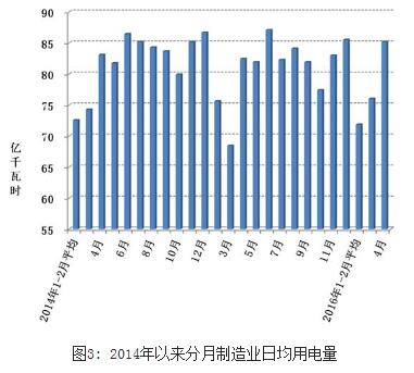 1-4月份,全國制造業(yè)用電量9225億千瓦時(shí),同比下降0.9%,增速比上年同期低0.7個(gè)百分點(diǎn)。4月份,全國制造業(yè)用電量2557億千瓦時(shí),同比增長0.8%;制造業(yè)日均用電量85.2億千瓦時(shí)/天,分別比上年同期和上月增加0.7億千瓦時(shí)/天和9.2億千瓦時(shí)/天。
