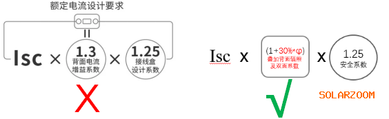 2021年2月,IEC61215/IEC61730:2021已發(fā)布,標(biāo)準(zhǔn)中增加了雙面組件的相關(guān)定義和描述。該標(biāo)準(zhǔn)推薦按照1.25xIsc-BSI 進(jìn)行零部件選型,請注意這里需要考慮雙面組件的雙面系數(shù)φ(目前,普遍的雙面系數(shù)φ約為70%)。根據(jù)歷次標(biāo)準(zhǔn)升級慣例,考慮到認(rèn)證機構(gòu)及實驗室設(shè)備升級、資質(zhì)認(rèn)可,2021版標(biāo)準(zhǔn)的正式執(zhí)行還需數(shù)月至數(shù)年時間。然而,《無法忽視的真相》一文,生搬硬套錯誤的標(biāo)準(zhǔn)并缺乏深度理解,這是完全不了解產(chǎn)品和標(biāo)準(zhǔn)的表現(xiàn)。