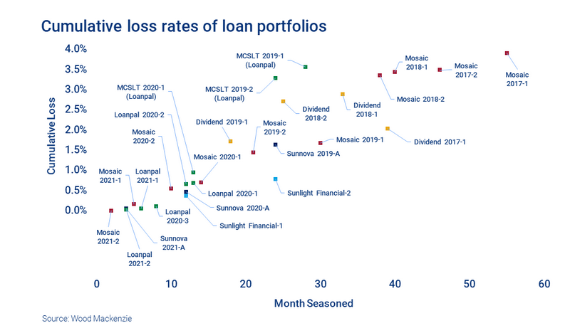 金融家繼續(xù)報(bào)告各種租賃、購電協(xié)議、貸款組合的低拖欠率和損失率。投資者現(xiàn)在可以獲得某些投資組合近五年的業(yè)績數(shù)據(jù)。而隨著時(shí)間的推移,有更好表現(xiàn)的供應(yīng)商應(yīng)該在未來的交易中獲得更低的資本成本。