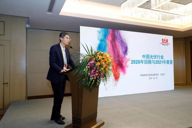 論壇上,中國光伏行業(yè)協(xié)會王世江秘書長做了題為《2020年中國光伏行業(yè)回顧和2021年中國光伏行業(yè)展望》的主題演講。王秘書長指出,2020年,國內光伏電站裝機規(guī)模持續(xù)提升,投資成本繼續(xù)下降,產(chǎn)業(yè)集中度快速提升,技術不斷發(fā)展,融資規(guī)模不斷擴大,國際化布局不斷加強;展望2021年,全球光伏市場規(guī)模將加速擴大,源網(wǎng)荷儲一體化和多能互補大基地將成為電站開發(fā)關注熱點,技術快速迭代,行業(yè)將迎來擴產(chǎn)潮,“光伏+”模式帶來更多應用可能性,預計光伏將占據(jù)可再生能源增量市場半壁江山。