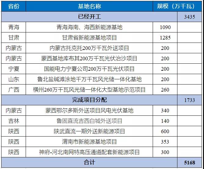 青海省10.9GW、甘肅省12.85GW、陜西省12.53GW、內(nèi)蒙古自治區(qū)7.4GW、山東2GW、廣西2.6GW、吉林1.4GW。