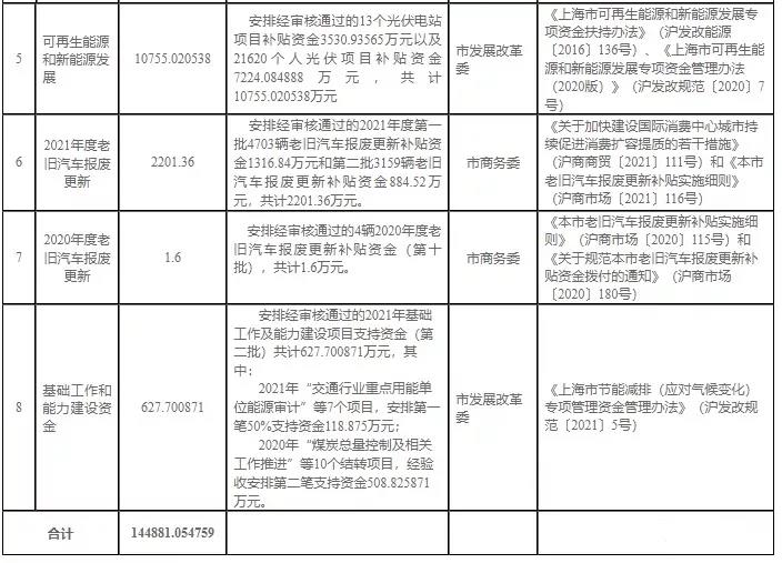 8、按照《上海市節(jié)能減排(應(yīng)對(duì)氣候變化)專項(xiàng)管理資金管理辦法(滬發(fā)改規(guī)范〔2021〕5號(hào))》等規(guī)定,安排經(jīng)審核通過的2021年基礎(chǔ)工作及能力建設(shè)項(xiàng)目支持資金(第二批)共計(jì)627.700871萬(wàn)元,其中: