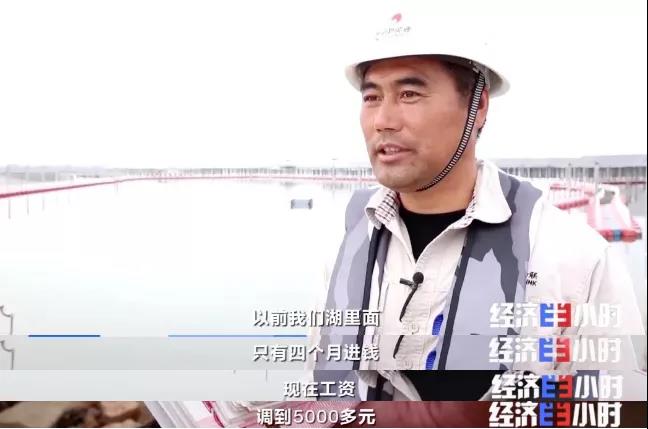 這天,周金飛他們整整賣(mài)了十車(chē)魚(yú),拿到了1000元獎(jiǎng)金。他現(xiàn)在不僅拿工資、領(lǐng)獎(jiǎng)金,還有五險(xiǎn)一金的待遇保障。工資、獎(jiǎng)金、湖面租金,一年收入將近十萬(wàn)元。