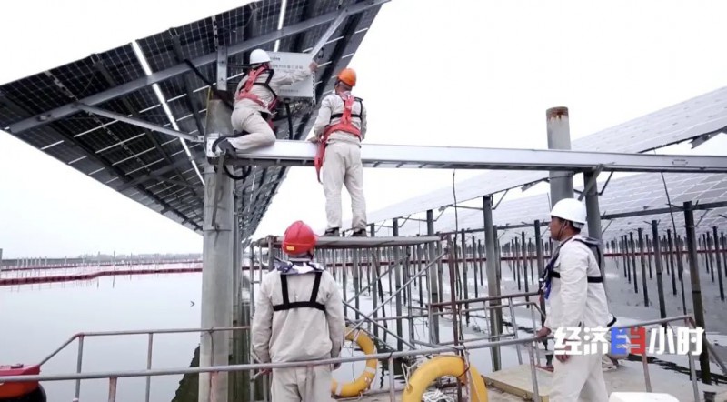 這個(gè)漁光一體光伏電站,光伏板能遮擋陽(yáng)光,降低水面溫度,減少水分蒸發(fā)的同時(shí)抑制藻類(lèi)生長(zhǎng),為魚(yú)蝦提供更好的生長(zhǎng)環(huán)境。