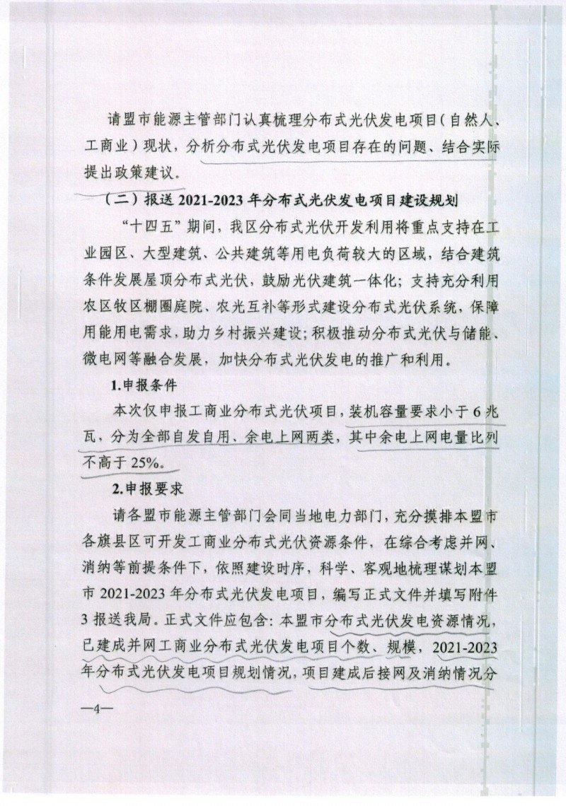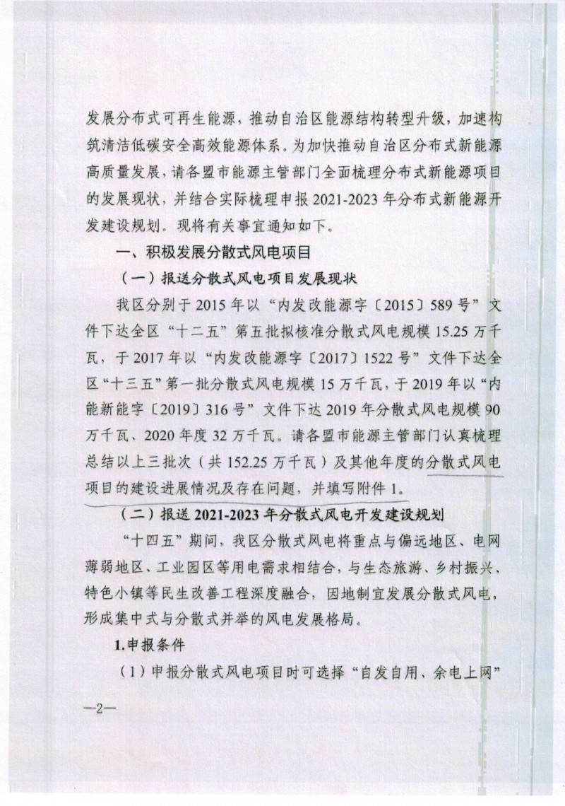 近日,內蒙古自治區(qū)能源局發(fā)布關于報送《分布式新能源項目建設三年行動計劃(2021-2023年)》的通知。