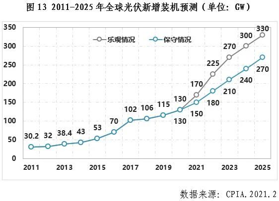(二)我國光伏市場將進(jìn)入快速發(fā)展新階段2021年是“十四五”規(guī)劃的開局之年,也是我國光伏發(fā)電進(jìn)入平價上網(wǎng)的關(guān)鍵之年。2021年我國光伏應(yīng)用市場將繼續(xù)保持快速增長勢頭,預(yù)計新增裝機(jī)規(guī)模可達(dá)55-65GW,其中競價結(jié)轉(zhuǎn)項(xiàng)目10GW左右,戶用市場有望達(dá)到15GW,工商業(yè)分布式預(yù)計在10GW左右,外送及平價地面電站在20-30GW左右。在“碳達(dá)峰、碳中和”目標(biāo)下, “十四五”期間我國光伏市場將迎來市場化建設(shè)高峰,預(yù)計國內(nèi)年均光伏裝機(jī)新增規(guī)模在70-90GW,有望進(jìn)一步加速我國能源轉(zhuǎn)型。