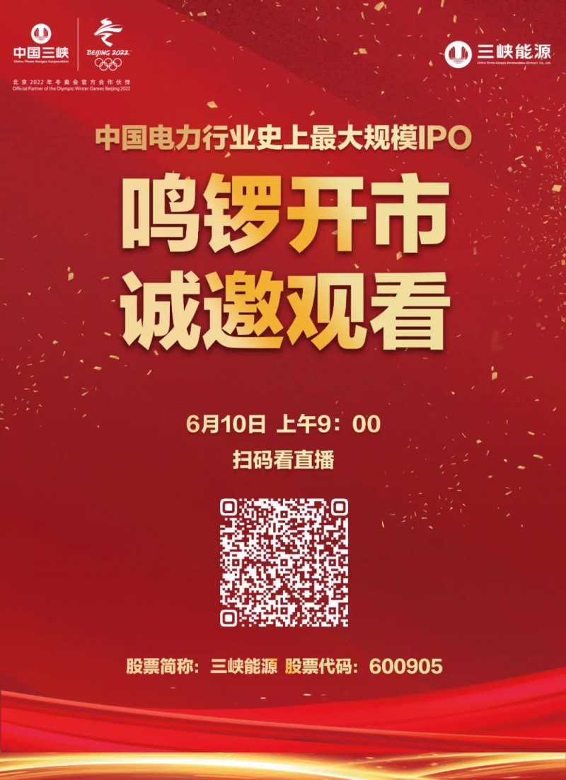 中國電力行業(yè)史上最大規(guī)模IPO,據(jù)中國三峽新能源(集團)股份有限公司發(fā)布《上市公告書》顯示,三峽能源股票將于今日9:00在上海證券交易所上市。股票代碼“600905”