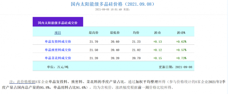9月8日,硅業(yè)分會發(fā)布多晶硅最新價(jià)格信息。