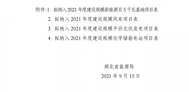 9月15日,湖北省能源局下發(fā)《關(guān)于2021年平價(jià)新能源項(xiàng)目審查結(jié)果的公示》,提出: