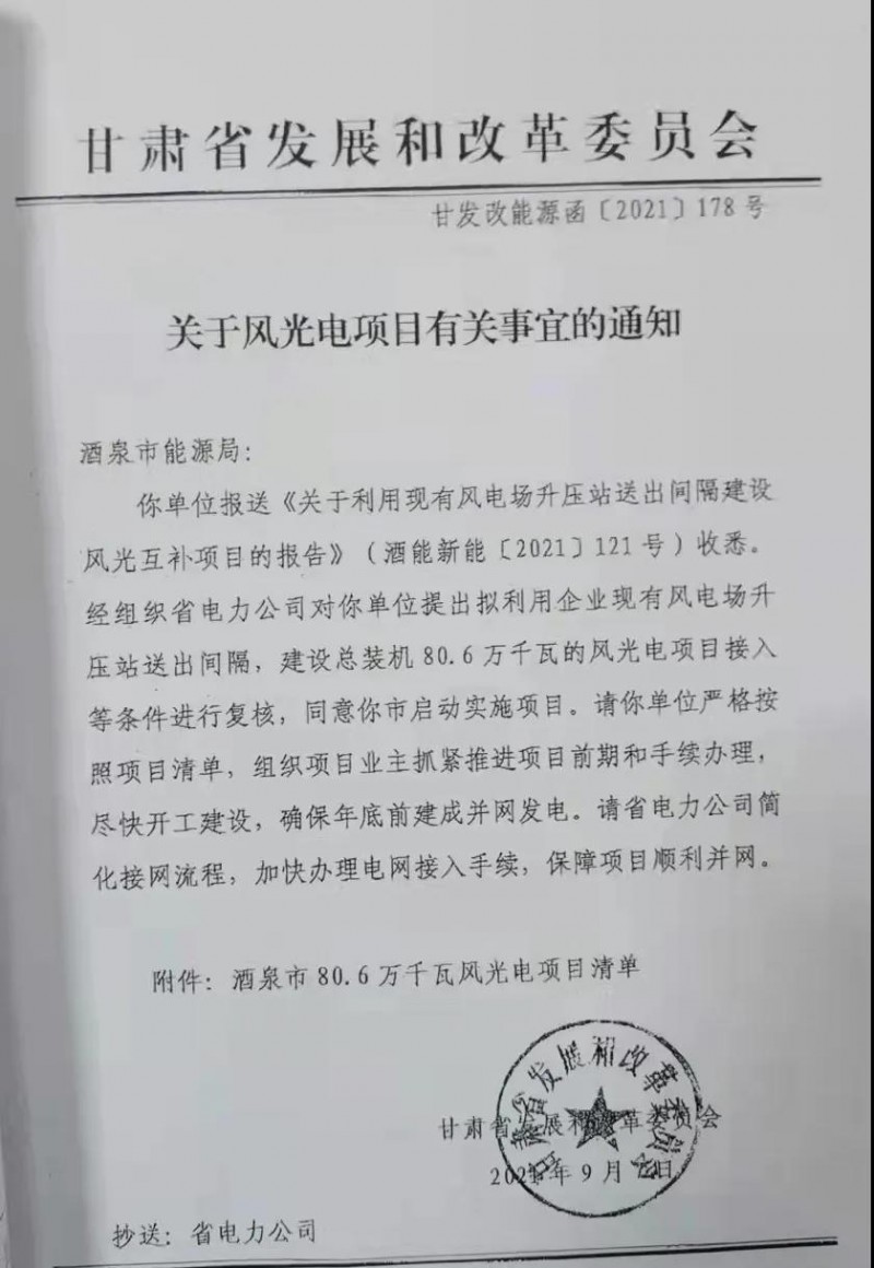 酒泉風(fēng)、光項目名單