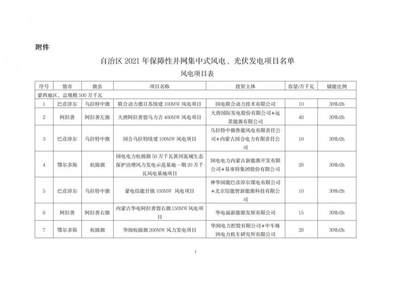 附件:自治區(qū)2021年保障性并網(wǎng)集中式風電、光伏發(fā)電項目名單
