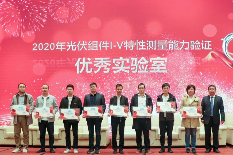 此次會議對常熟阿特斯陽光電力科技有限公司光伏測試中心、常州亞瑪頓股份有限公司中心實(shí)驗(yàn)室、滁州隆基樂葉光伏科技有限公司檢測中心、東方日升新能源股份有限公司實(shí)驗(yàn)室、海寧正泰新能源科技有限公司光伏檢測中心、合肥晶澳太陽能科技有限公司實(shí)驗(yàn)室、環(huán)晟光伏(江蘇)有限公司檢測實(shí)驗(yàn)室、江蘇隆基樂葉光伏科技有限公司檢測中心、江蘇賽拉弗光伏系統(tǒng)有限公司產(chǎn)品檢測中心、晉能清潔能源科技股份公司實(shí)驗(yàn)中心、晶科能源股份有限公司檢測中心(江西上饒)、晶科能源股份有限公司檢測中心(浙江海寧)、上海晶澳太陽能科技有限公司檢測中心、泰州隆基樂葉光伏科技有限公司檢測中心、泰州中來光電科技有限公司檢測中心、通威太陽能(合肥)有限公司光伏實(shí)驗(yàn)中心、無錫尚德太陽能電力有限公司光伏產(chǎn)品檢驗(yàn)實(shí)驗(yàn)室、張家港協(xié)鑫集成科技有限公司檢測中心、浙江隆基樂葉光伏科技有限公司檢測中心、浙江正泰新能源開發(fā)有限公司光伏檢測中心、中建材浚鑫科技有限公司光伏產(chǎn)品檢測中心、中節(jié)能太陽能科技(鎮(zhèn)江)有限公司,共計(jì)22家實(shí)驗(yàn)室,頒發(fā)了“2020年光伏組件I-V特性測量能力驗(yàn)證 優(yōu)秀實(shí)驗(yàn)室”獎,對東方日升新能源股份有限公司實(shí)驗(yàn)室、海寧正泰新能源科技有限公司光伏檢測中心、合肥晶澳太陽能科技有限公司實(shí)驗(yàn)室、上海晶澳太陽能科技有限公司檢測中心,共計(jì)4家實(shí)驗(yàn)室,頒發(fā)了“CTC國檢集團(tuán)優(yōu)秀合作實(shí)驗(yàn)室”獎。