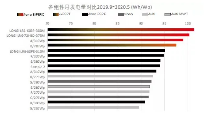 在德國PV Magazine雜志組織的“PV Magazine Test”組件戶外發(fā)電測試中,隆基雙面組件長期位居發(fā)電量排行榜榜首,發(fā)電量顯著領先于眾多參評組件。
