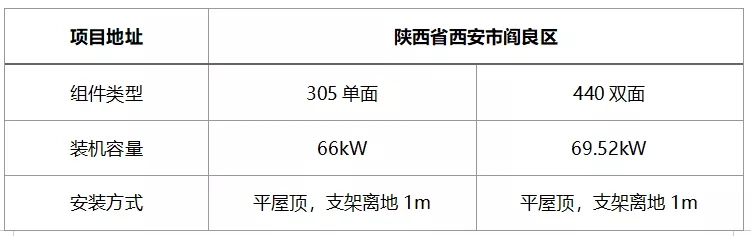 位于陜西省西安市閻良區(qū)一處居民平屋頂項目,安裝了雙面組件后表現(xiàn)出很好的發(fā)電性能。由于居民屋頂為水泥屋頂,反射率較高,且屋頂整體較平整,因此選用了隆基PERC雙面組件,總裝機容量達69.5kWp。項目具體信息如下: