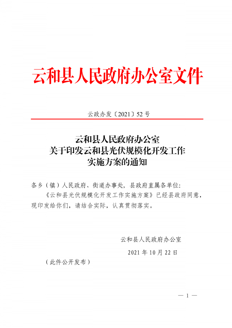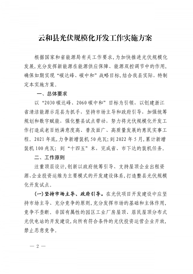 日前,浙江云和縣人民政府辦公室正式印發(fā)印發(fā)云和縣光伏規(guī)模化開發(fā)工作實施方案的通知。