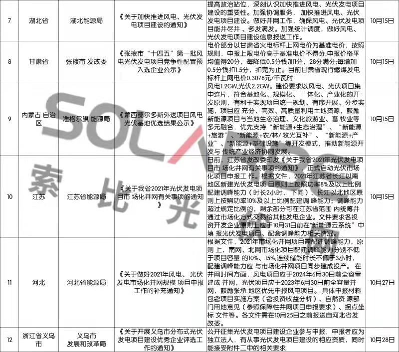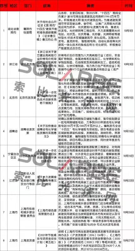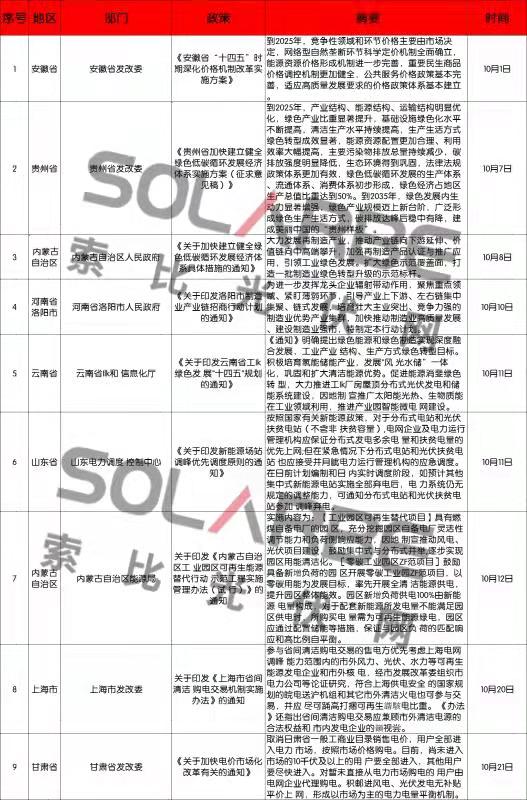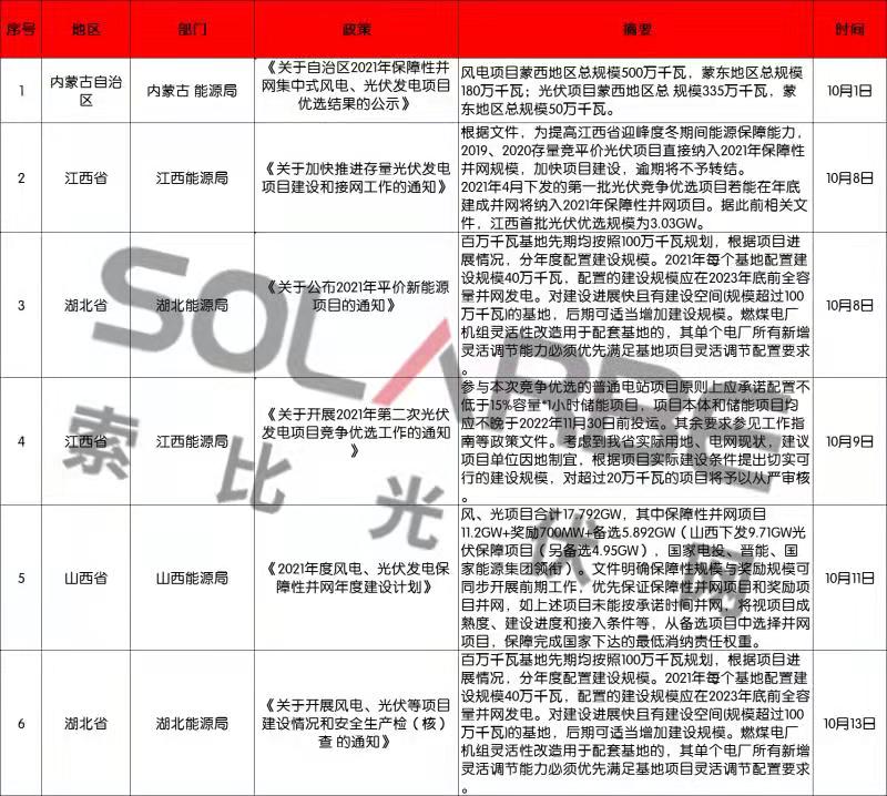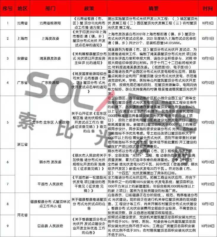那么,10月份的光伏行業(yè)又有哪些政策值得關注呢?下面來看索比光伏網的梳理。