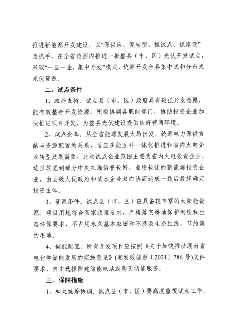 根據(jù)文件,此次試點企業(yè)范圍主要為省內(nèi)火電投資企業(yè),適當(dāng)放寬到部分中央在湘信譽較好、業(yè)績較優(yōu)的新能源投資企業(yè)。試點企業(yè)單個集中式光伏項目建設(shè)規(guī)模應(yīng)不低于1萬千瓦,允許非試點企業(yè)和自然人利用自有屋頂按照“自發(fā)自用,余電上網(wǎng)”的原則建設(shè)屋頂分布式光伏項目。