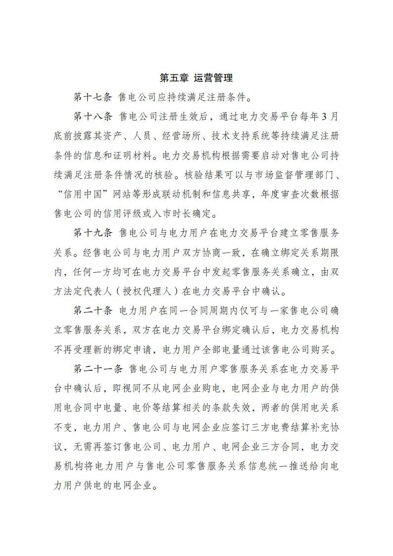 為貫徹落實《中共中央、國務(wù)院關(guān)于進一步深化電力體制改革的若干意見》(中發(fā)〔2015〕9號)和電力體制改革配套文件精神,國家發(fā)展改革委、國家能源局制定了《售電公司管理辦法》,現(xiàn)印發(fā)給你們,請按照執(zhí)行?!秶野l(fā)展改革委、國家能源局關(guān)于印發(fā)<售電公司準(zhǔn)入與退出管理辦法>和<有序放開配電網(wǎng)業(yè)務(wù)管理辦法>的通知》(發(fā)改經(jīng)體〔2016〕2120號)中《售電公司準(zhǔn)入與退出管理辦法》廢止。