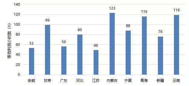 木聯(lián)能消息,已發(fā)布的2019年1月各重點(diǎn)省份的利用小時(shí)數(shù),重點(diǎn)省份包括安徽、甘肅、廣東、河北、江蘇、內(nèi)蒙古、寧夏、青海、新疆、云南等省份。本月內(nèi)蒙古平均利用小時(shí)數(shù)為123小時(shí),排名第一。