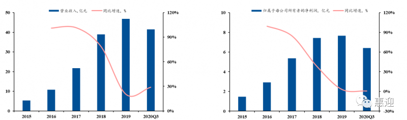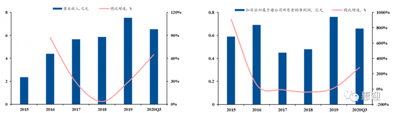 公司是光伏自動(dòng)化組件設(shè)備的頭部供應(yīng)商,下游客戶涵蓋國內(nèi)多家知名光伏組件企業(yè),同時(shí)積極布局新型組件設(shè)備,向壁壘較高的電池設(shè)備領(lǐng)域延伸,探索新增長點(diǎn)。2015-2019 年,公司業(yè)績大幅增長,營業(yè)收入從 2.92 億元增長至 7.9 億元,CAGR 為 31.08%。截止 2020 年第三季度,公司的歸母凈利潤為 0.65 億元,同比增長 65%,超過 2019 年全年歸母凈利潤。合同負(fù)債已達(dá) 3.71 億元,為 2021 年業(yè)績奠定良好基礎(chǔ)。2019 年,光伏組件自動(dòng)化生產(chǎn)線作為公司的主營業(yè)務(wù),占總營收的 93.11%,輔之以串焊機(jī)、層壓機(jī)等價(jià)值量較高的單機(jī)設(shè)備。