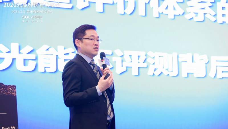 鑒衡太陽能事業(yè)部總經(jīng)理周罡進(jìn)行《中國光伏制造評價(jià)體系的國際化之路--光能杯評測背后的故事》主題演講