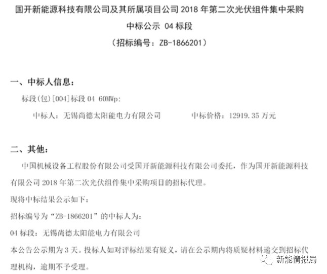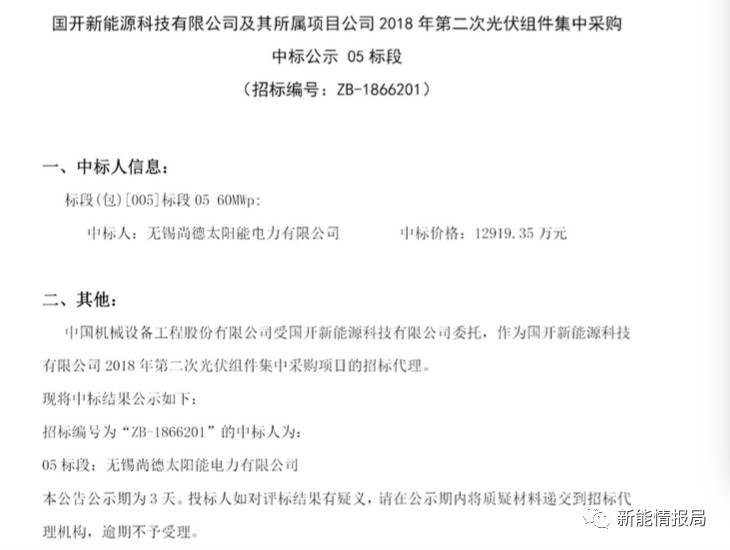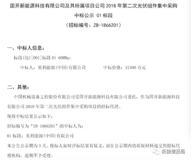 7月28日,國開新能源科技有限公司及其所屬項目公司發(fā)布2018年第二次光伏組件集中采購中標(biāo)公示。
