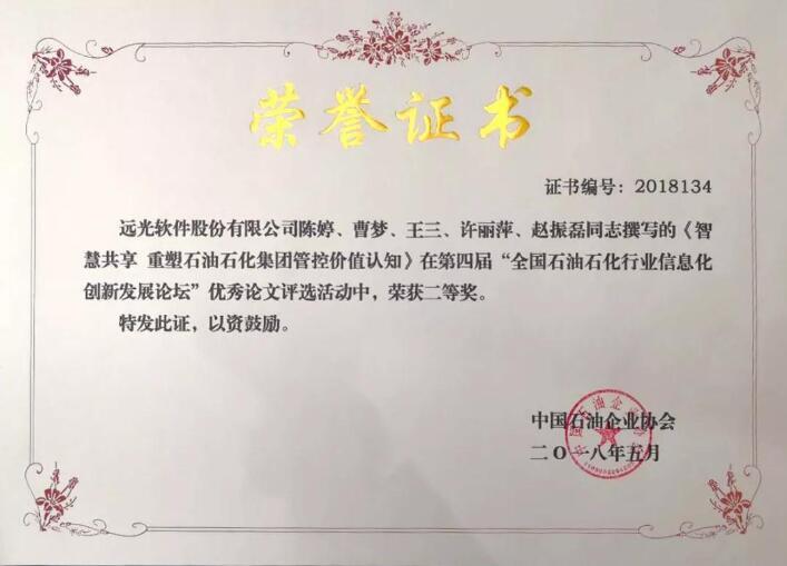 本次大會還面向全國各石油石化企業(yè)及相關(guān)信息與技術(shù)合作服務(wù)單位,廣泛征集會議論文。由遠(yuǎn)光軟件陳婷等撰寫的《智慧共享 重塑石油石化集團(tuán)管控價(jià)值認(rèn)知》榮獲本次論文評選二等獎。