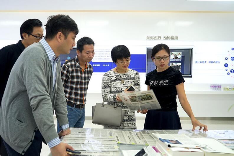 遠(yuǎn)光軟件子公司珠海遠(yuǎn)光移動互聯(lián)科技有限公司總經(jīng)理王令將熱情接待了調(diào)研團(tuán)。在遠(yuǎn)光軟件展廳,沈寒英一行了解了公司的業(yè)務(wù)概況、產(chǎn)業(yè)布局、發(fā)展歷程和企業(yè)文化等,對遠(yuǎn)光軟件近年來在社會信息服務(wù)及企業(yè)管理領(lǐng)域的創(chuàng)新技術(shù)和應(yīng)用碩果表示肯定。