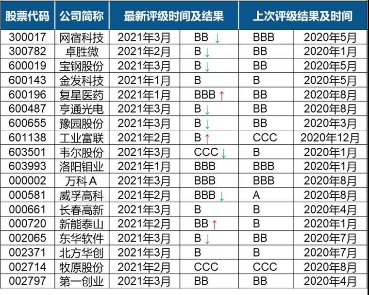 表:A股最新ESG評(píng)級(jí)調(diào)整結(jié)果