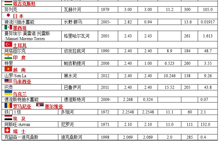 梯級水電站是世界上發(fā)展水力發(fā)電的一個重要的獲取電力的方式。在制作下表時,我把相同一河流的水電站歸納在一起,您可以看出,世界上許多河流都是梯級水電站。