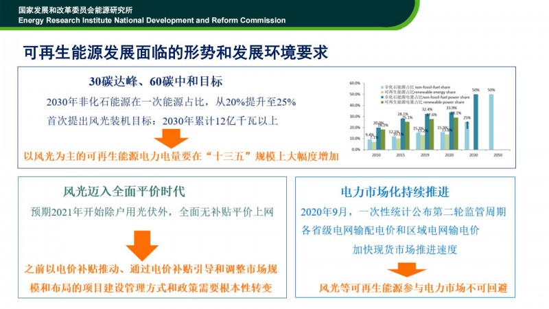 時璟麗老師在“2021光伏領袖大會”上的發(fā)言稿。時老師認為:可再生能源要在能源轉型中發(fā)揮重要作用。2050年,中國要建成高比例可再生能源電力系統(tǒng)。其中,非化石能源占比將達到91%,風電、光伏占比將達到73%!未來可再生能源的發(fā)展,從資源、技術、產業(yè)、經(jīng)濟性角度,均不存在瓶頸與障礙!