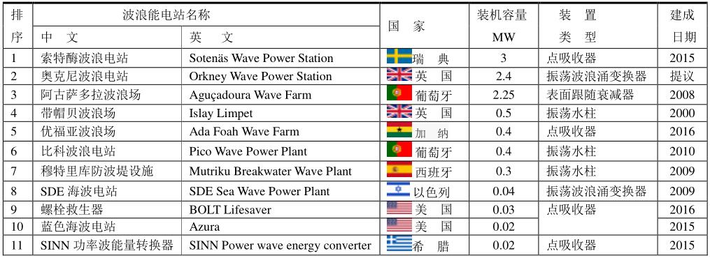 波浪能屬于海洋能之一種。根據(jù)所采用的技術,波場可分為8種類型,如表面跟隨衰減器(Surface-following attenuator)、點吸收器(Point absorber)、振蕩波浪涌變換器(Oscillating wave surge converter)、振蕩水柱(Oscillating water column)、越浪/終止器(Overtopping/Terminator)、淹沒壓差(Submerged pressure differential)、鼓浪裝置(Bulge wave device)和旋轉(zhuǎn)質(zhì)量(Rotating mass)。