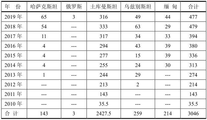 世界上天然氣儲量最多的國家是俄羅斯,土庫曼斯坦居世界第四位。中國管輸天然氣進(jìn)口依靠資源豐富的俄羅斯和中亞國家,最早的最重要的出口國是土庫曼斯坦,于2010年開始出口,到2019年總量已經(jīng)達(dá)到2427.5億立方米;其次是烏茲別斯坦、緬甸和哈薩克斯坦。俄羅斯從2019年也開始出口到中國,而且將會逐年增加,成為管輸出口到中國最多的國家。