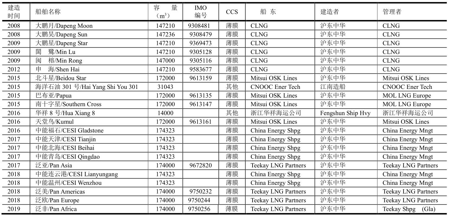 2019年底全球FSRU總計有37艘。FSRU總貨運能力達到5 700 000 m3。訂單包括7艘FSRU,其中4艘已安排2020年交付。2019年底中國FSRU訂單有一項。