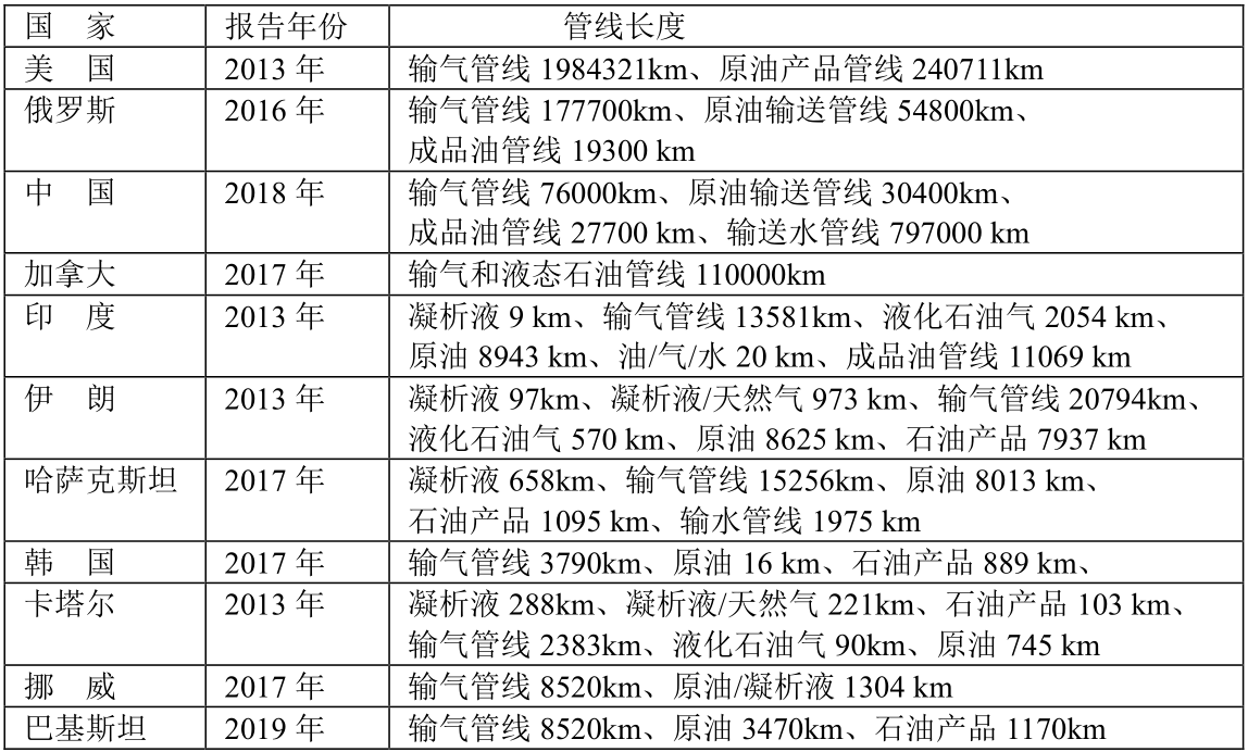 根據(jù)美國(guó)中央情報(bào)局(Central Intelligence Agency)《世界各國(guó)紀(jì)實(shí)年鑒》的統(tǒng)計(jì),世界上輸氣管道最多的國(guó)家是美國(guó),幾乎占全球輸氣管線的69%,其次是富產(chǎn)天然氣的俄羅斯,居世界第二;中國(guó)體量大,居世界第三,輸氣管線長(zhǎng)度為76000km,僅為美國(guó)的1/25。