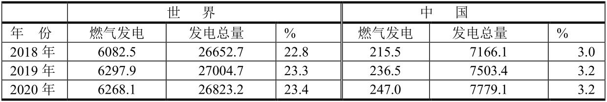 世界與中國(guó)燃?xì)獍l(fā)電的比較(單位:TWh)