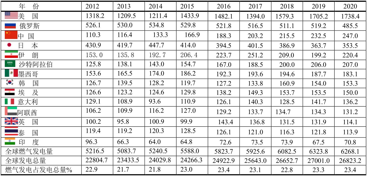 燃?xì)獍l(fā)電量最多的國(guó)家