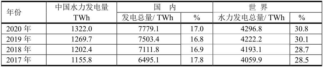 水力發(fā)電是再生能源發(fā)電的“領(lǐng)頭羊”,遠(yuǎn)比風(fēng)力和太陽能的發(fā)電量多。在全球發(fā)電份額中,水力發(fā)電僅次于燃煤發(fā)電和燃?xì)獍l(fā)電,居世界第三,約占全球水力發(fā)電總量的30%。水力發(fā)電在中國的地位大大提升,目前在中國發(fā)電份額中燃煤發(fā)電居首,水力發(fā)電居第二位(見表)。