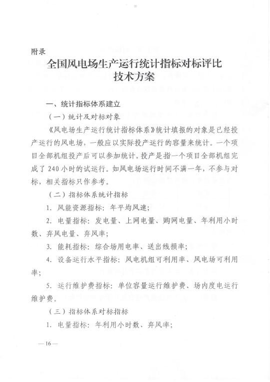 關(guān)于印發(fā)《風電場生產(chǎn)運行統(tǒng)計指標體系》(2016版)、《全國風電場生產(chǎn)運行統(tǒng)計指標對標評比管理辦法》(2016版)的通知