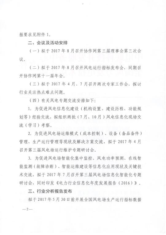 關于印發(fā)2017年全國風力發(fā)電技術協(xié)作網(wǎng)工作安排的通知