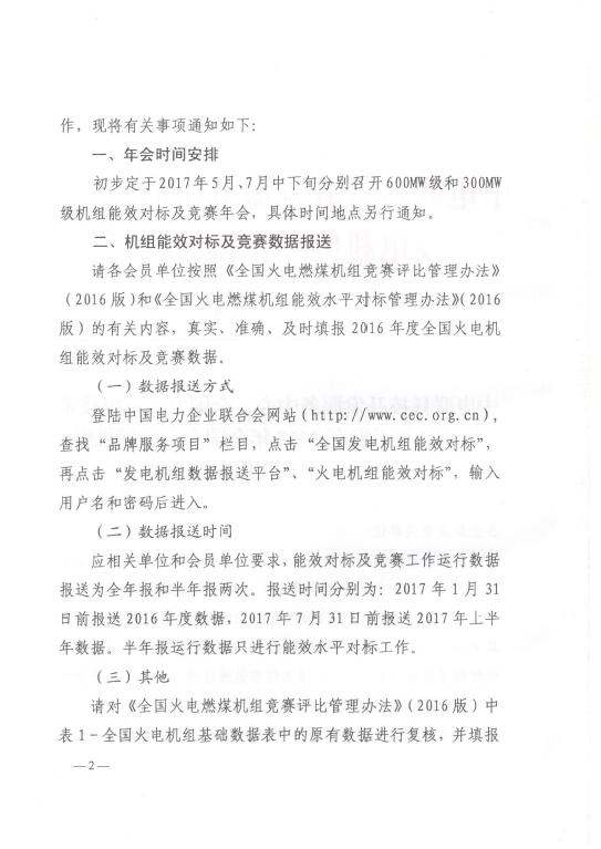 關(guān)于發(fā)布2017年全國火電燃煤機組能效對標(biāo)及競賽工作安排的通知