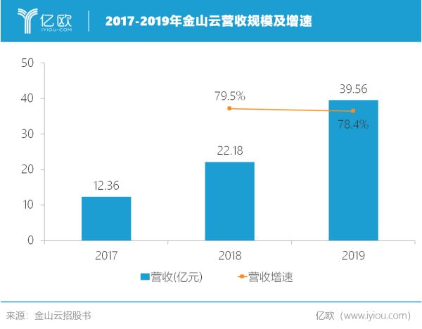 近年來,金山云的業(yè)績(jī)表現(xiàn)同樣堪稱驚艷,2017年至2019年,其營(yíng)收從12.36億元增長(zhǎng)至39.56億元,復(fù)合年均增長(zhǎng)率高達(dá)79%。這樣的增長(zhǎng)速率也遠(yuǎn)遠(yuǎn)超出了Frost & Sullivan數(shù)據(jù)顯示的2015至2019年間云計(jì)算行業(yè)37.7%的整體增速。