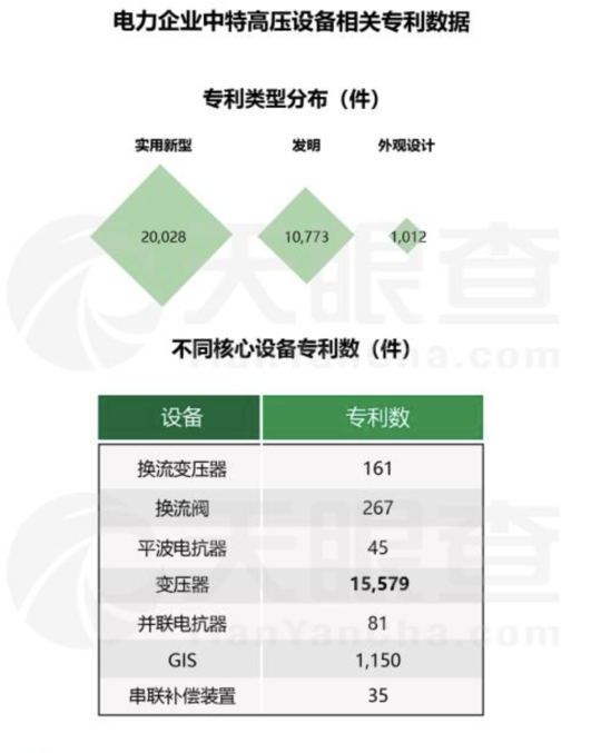 具體來看,全部特高壓設備相關專利中,有超過2萬件屬于實用新型,1萬件屬于發(fā)明,其余1千件是與外觀設計相關。從專利內容來看,與特高壓核心設備變壓器相關的專利數量最多,超過1.5萬件,占全部專利數量的49%,其次是與氣體絕緣金屬封閉開關(簡稱GIS)相關的專利,數量有1,150件。