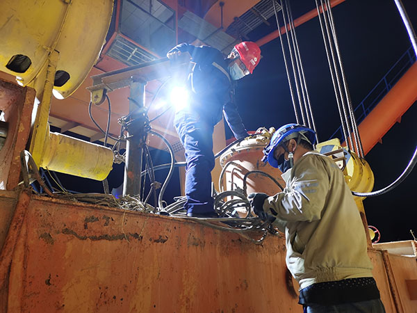大功告成后,起重人員又開始愉快地“復(fù)工”了,檢修一行人來也匆匆、去也匆匆,一溜煙地消失在了漆黑的夜里,他們對(duì)故障的“當(dāng)頭一棒”,順利化解了“屋漏偏逢連夜雨,船遲又遇打頭風(fēng)”的尷尬局面。
