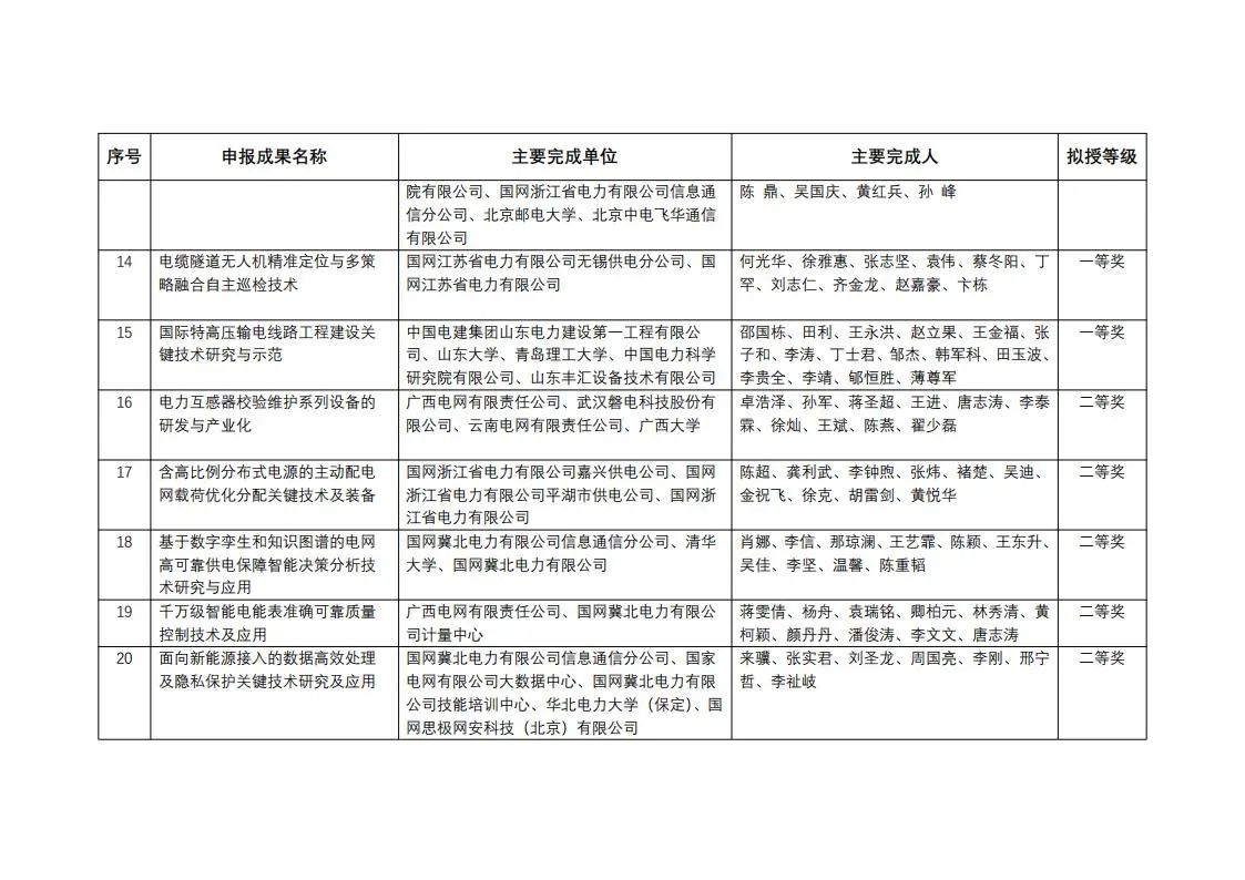 中國電力發(fā)展促進(jìn)會(huì)科學(xué)技術(shù)獎(jiǎng)2023年度擬授獎(jiǎng)成果公示