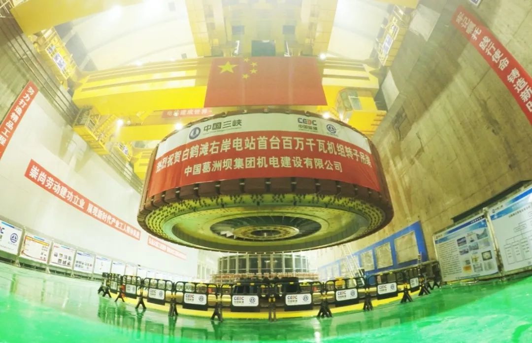 白鶴灘右岸電站首臺百萬千瓦機組轉子吊裝