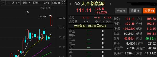 事件效應(yīng)已經(jīng)開(kāi)始展現(xiàn)。7月20日,美股大全新能源跳空高開(kāi),漲逾25%,最終收于111.11美元。
