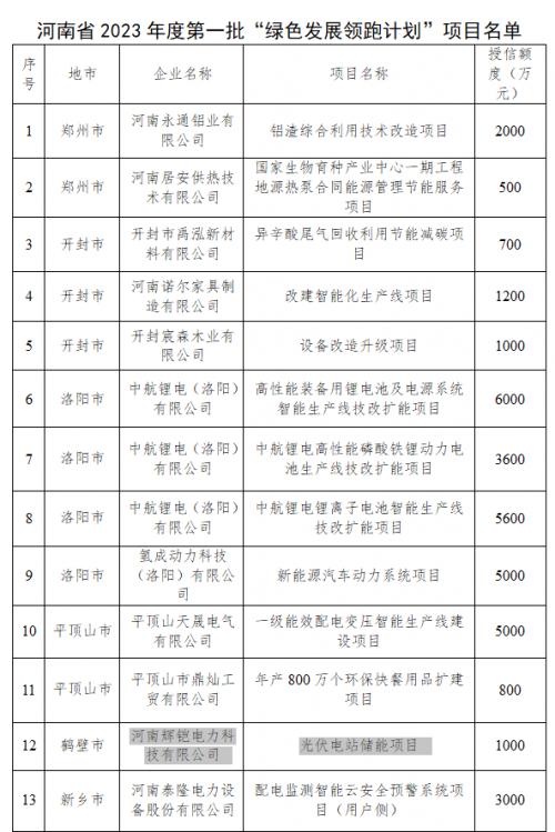 8月4日,河南省工業(yè)和信息化廳公布了2023年度第一批22個“綠色發(fā)展領(lǐng)跑計劃”項目名單,包括光伏電站儲能項目等,共涉及20家企業(yè),總授信額度12.73億元。